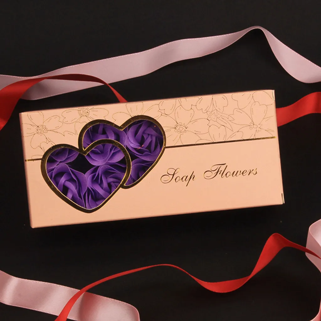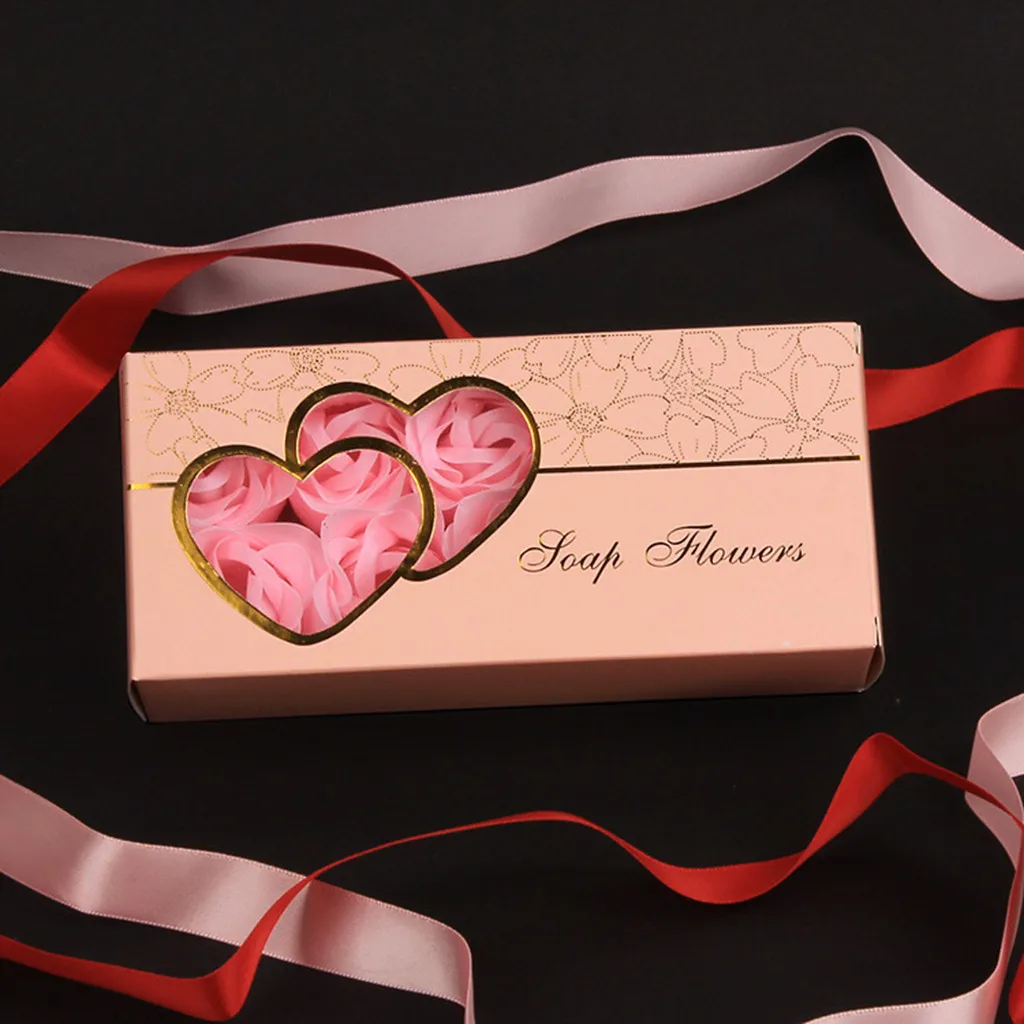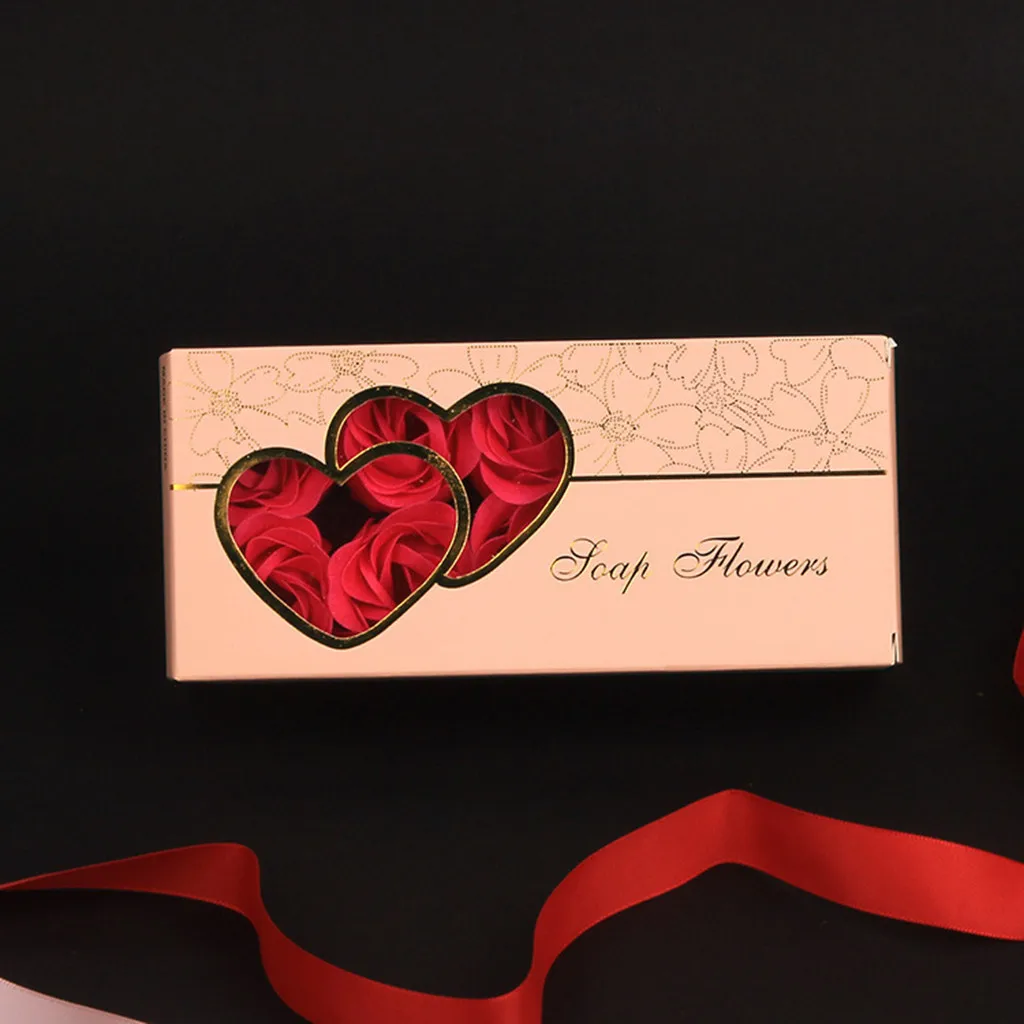 10Pcs Bath Soap Rose Petal in Heart BoxRose flower petal with soap on it, perfect for a quick hand wash or luxurious bath.